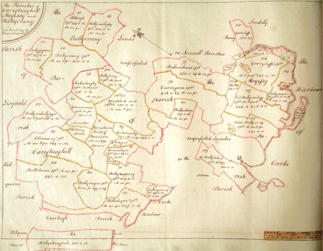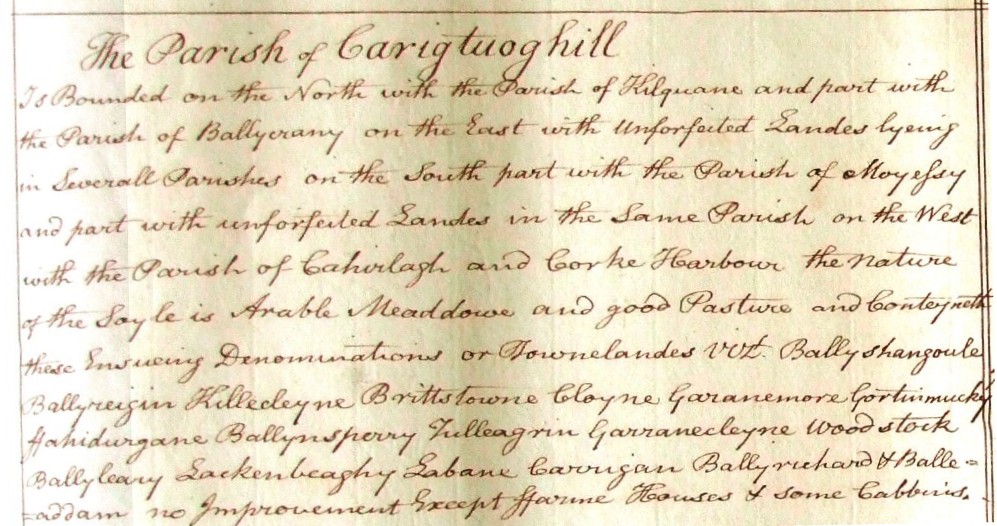 Parish on the West with the Parish of Cahirlagh and Corke Harbour the nature of the soyle is Arable Meaddowe and good