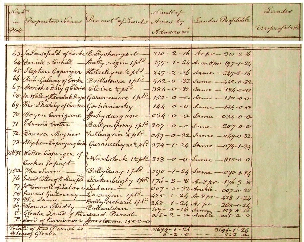 Lord Barrimore, naming it as Fforestowne, consisting of 188 acres. Viscount David Barry (1604–1642) had died